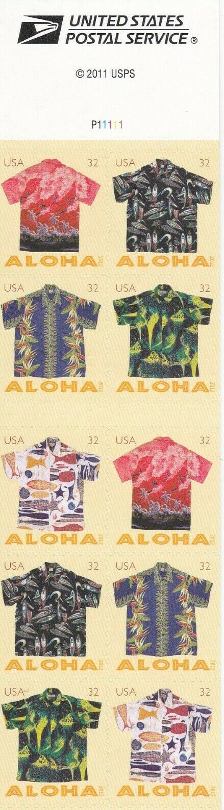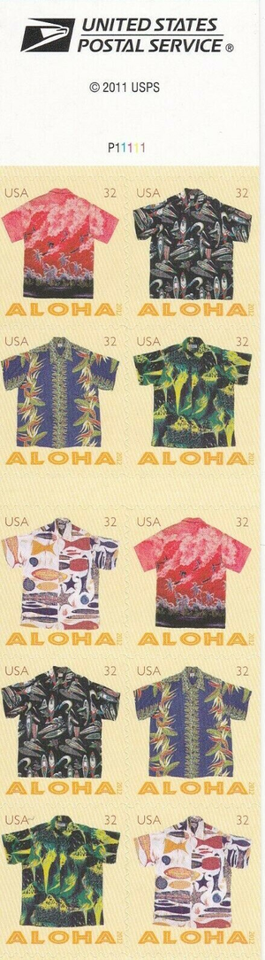 Aloha Shirts Pane of Ten 32 Cent Postage Stamps Scott 4686b