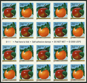 Apples And Oranges Pane of Twenty 34 Cent Postage Stamps Scott 3492b