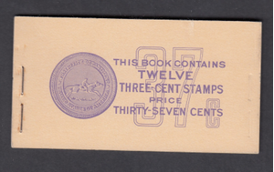 BK102 37¢ 3¢ 2½mm Complete Booklet, with partial plate #, Mint NH, Scott $20