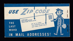 BK112, 5¢ Untagged Washington, Mr Zip Slogan 2 Booklet, Mint NH, Scott $90