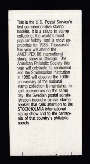 BK153a, Ameripex '86 Booklet with black omitted on both panes, MNH, Scott $100