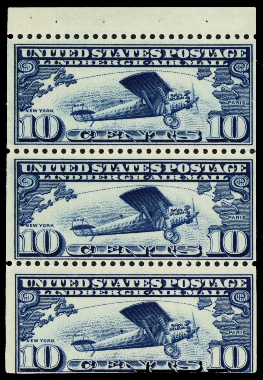 C10a, Mint F/VF NH 10¢ Booklet Pane of 3 Stamps CV $115 - Stuart Katz