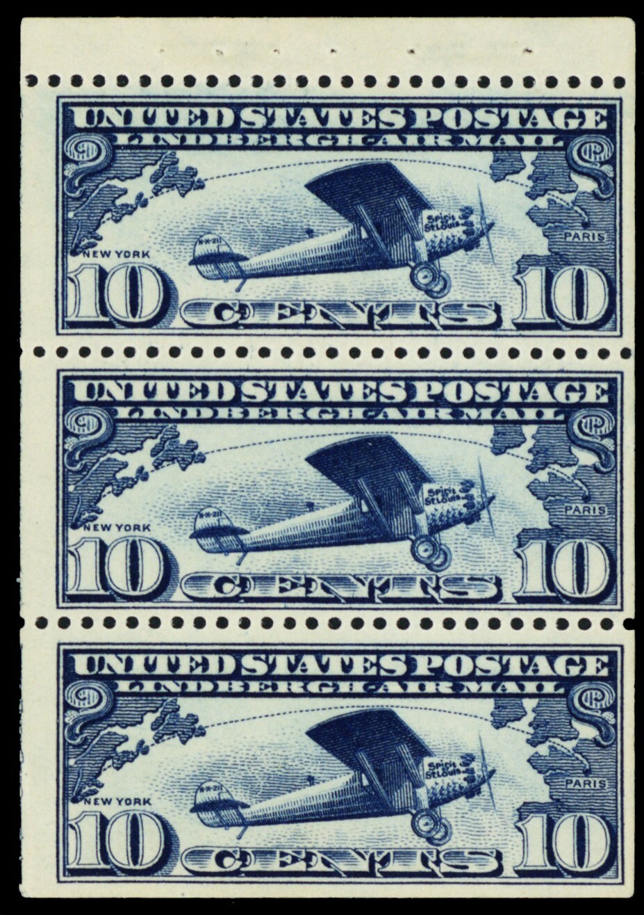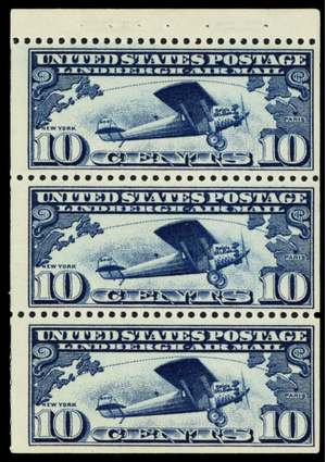 C10a, Mint VF NH 10¢ Booklet Pane of 3 Stamps CV $115 - Stuart Katz