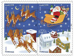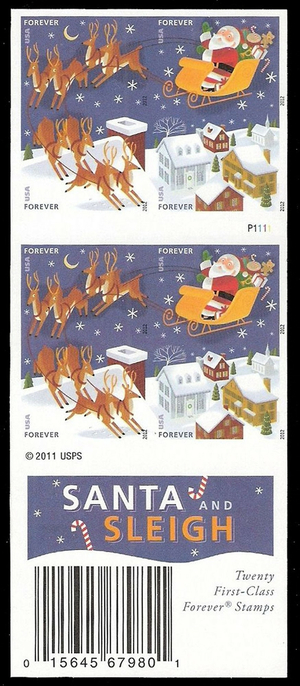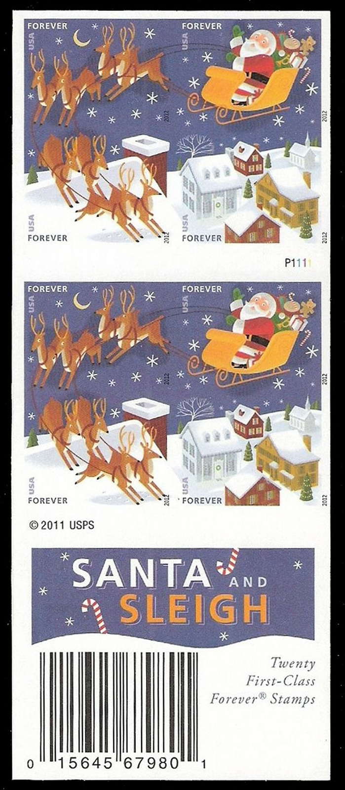 Christmas Santa's Sleigh Booklet Pane of 20 First Class Stamps Scott 4715b