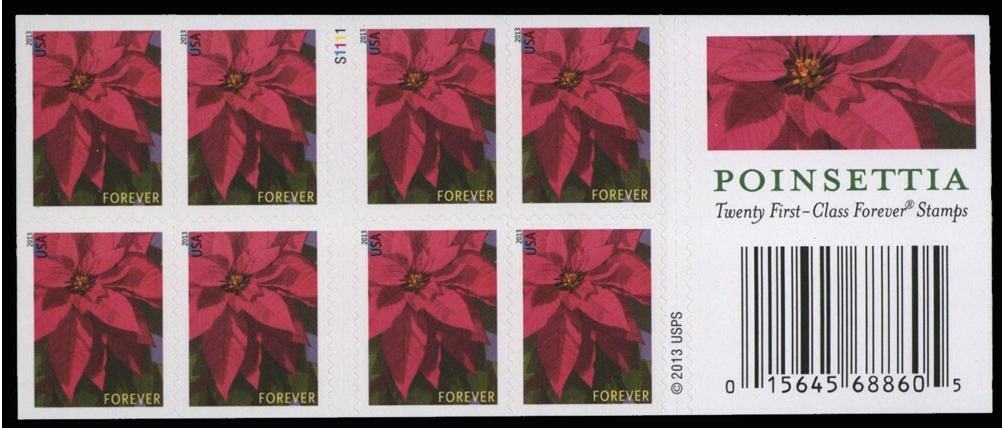 Poinsettia Wreath Booklet Pane of 20 First Class Stamps Scott 4816a