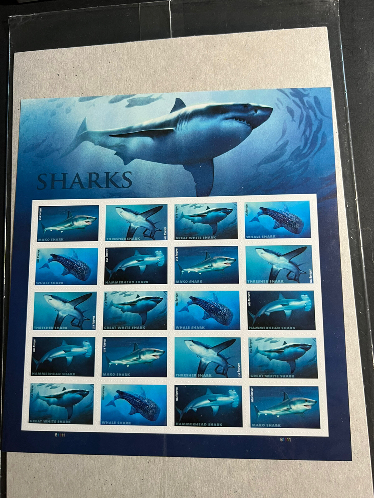 Scott #5223-5227-SHARKS Sheet of 20 US Forever Stamps MNH 2017-NIP.