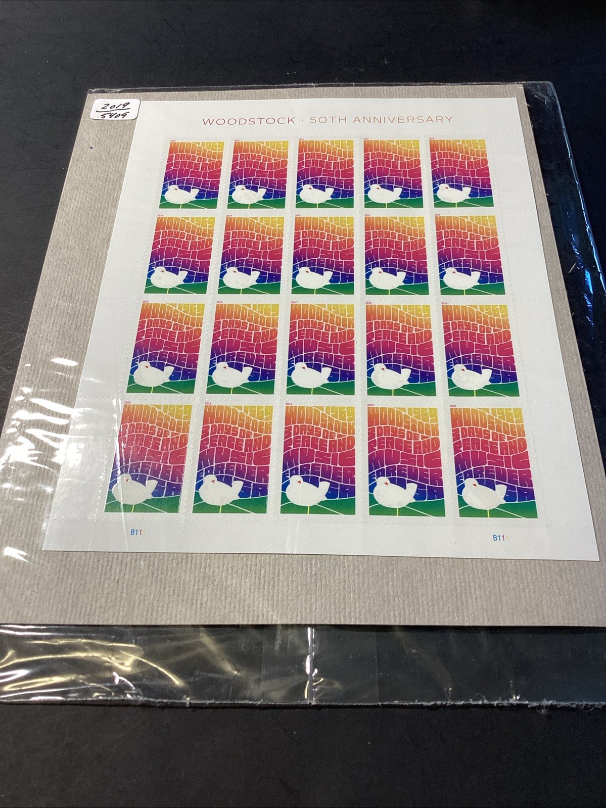 Scott#5409 WOODSTOCK 50th ANNIVERSARY 2019 MNH SHEET OF 20 US FOREVER STAMPS-NIP. Shipped with USPS Ground Advantage.