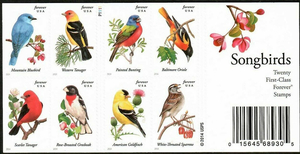 Songbirds Booklet Pane of 20 GENUINE - First Class Postage Stamps Scott 4891b