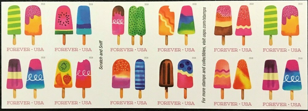 The Frozen Treats Scratch and Sniff Pane of 20 First Class Stamps Scott 5294b
