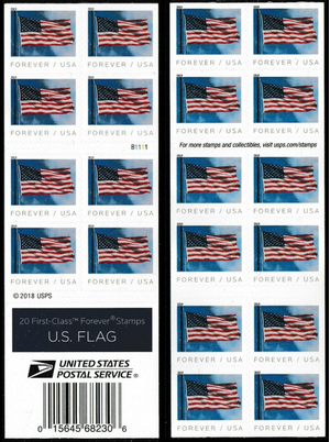 U.S. Flag Booklet of 20 - First Class Postage Stamps Scott 5345a