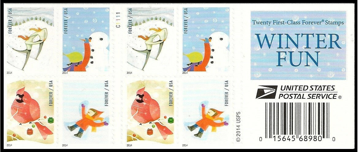 Winter Fun Pane of 20 Current Rate Postage Stamps Scott 4940b - Stuart Katz