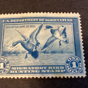 SCOTT# RW1 - 1934 $1 BLUE FEDERAL DUCK STAMP MHOG