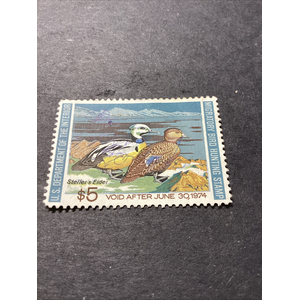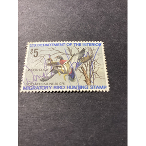 Scott #RW41 $5 “Wood Duck” Used 1974 With Gum US