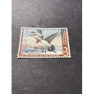 Scott#RW25 Duck Stamp, used 1958 Partial Gum Plate # Single US