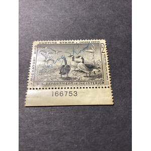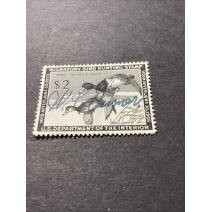 Scott#RW24 - Used - Signed -Glazed Gum With Selvage-1957 US