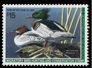 (23494 )  US stamp scott#  RW61 MNHOG  (XF, $15 Federal Duck stamp)