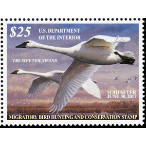 RW83, VF Mint NH 2016 Trumpeter Swans Federal Duck Stamp - Stuart Katz