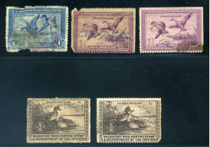 RW1, RW5 (2), RW6 (2), Used Faulty Duck Stamp Group, Scott $425