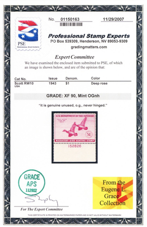 RW10, Mint NH XF $1 Duck Stamp - PSE Graded 90 * Stuart Katz