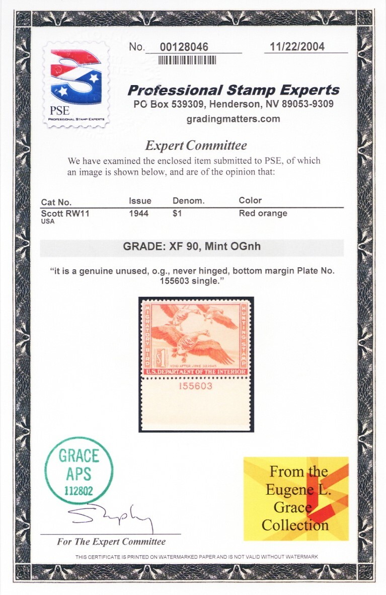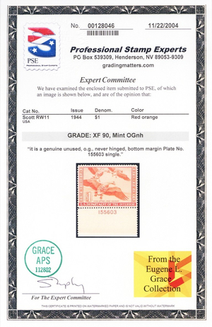 RW11, Mint NH XF $1 Duck Stamp - PSE Graded 90 * Stuart Katz
