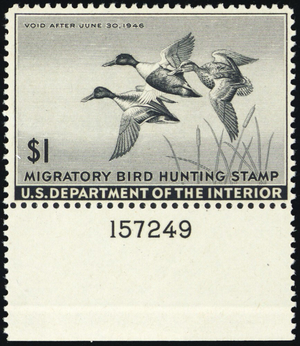 RW12, Mint VF NH $1 Duck Stamp With PL# - Stuart Katz