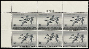 RW12, Mint VF-XF NH Top Plate Block of Six Duck Stamps Cat $600.00 - Stuart Katz