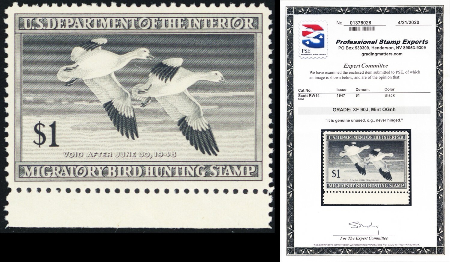 RW14, Mint XF NH $1 Duck Stamp - Graded 90J JUMBO PSE Certificate * Stuart Katz