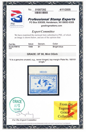RW15, Mint NH XF $1 Duck Stamp - PSE Graded 90 * Stuart Katz