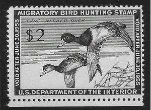 RW21 F-VF MNH OG-1954 FEDERAL DUCK HUNTING STAMP-RING-NECKED DUCKS (REM RW21 A)