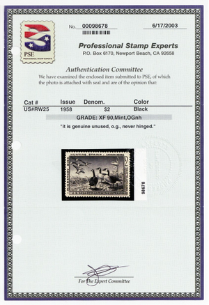 RW25, Mint XF NH $2 Duck Stamp - PSE Graded 90 SMQ $150 * Stuart Katz