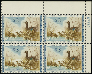 RW28, Mint XF NH $3 Mallard Brood Duck Plate Block - Stuart Katz