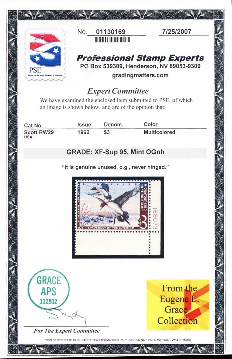 RW29, Mint NH XF/Superb $3 Duck Stamp - PSE Graded 95 * Stuart Katz