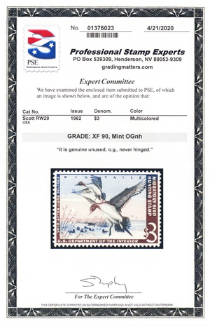 RW29, Mint XF NH $3 Duck Stamp - PSE Graded 90 * Stuart Katz