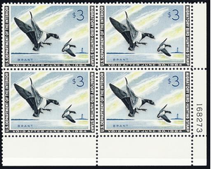 RW30, Mint NH XF $3 Duck Plate Block CV $ 450 - Stuart Katz