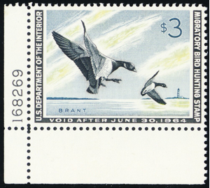 RW30, Mint XF NH $3 Duck Stamp With PL# * Stuart Katz
