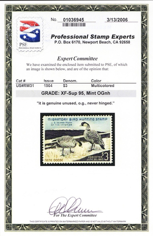 RW31, Mint XF/Superb NH $3 - With Graded 95 PSE Certificate - Stuart Katz