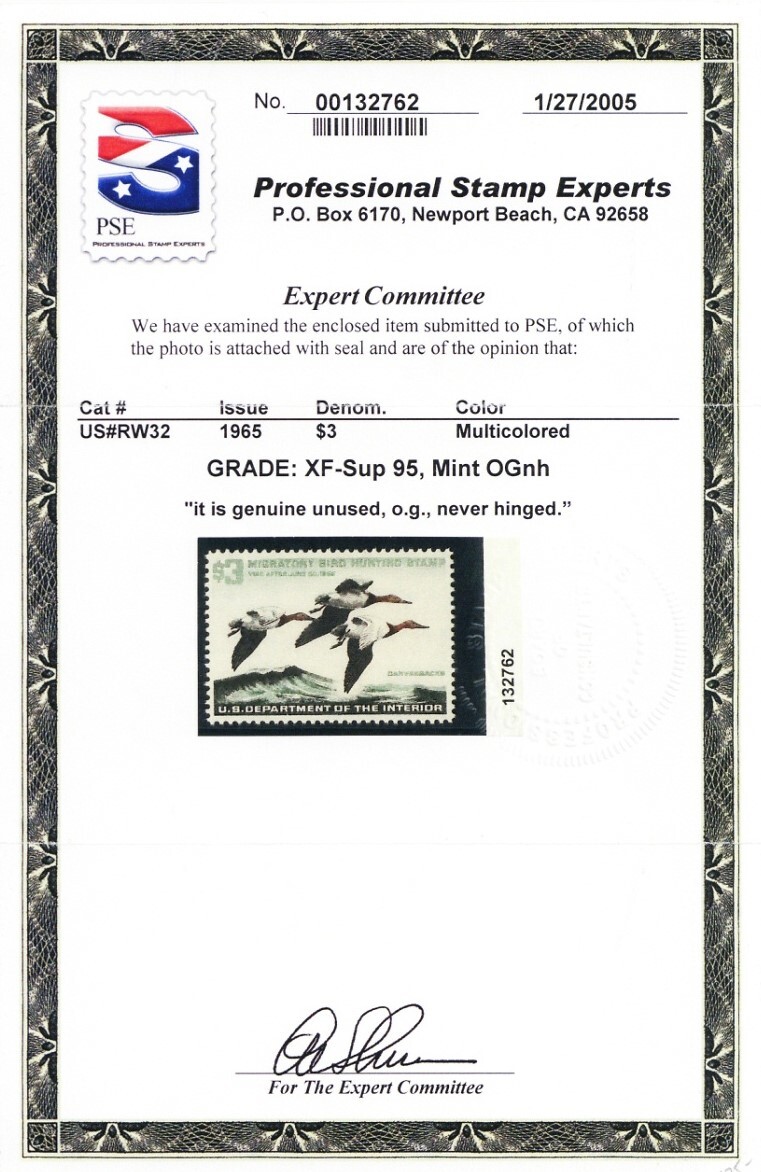 RW32, Mint XF/Superb NH $3 - With Graded 95 PSE Certificate - Stuart Katz