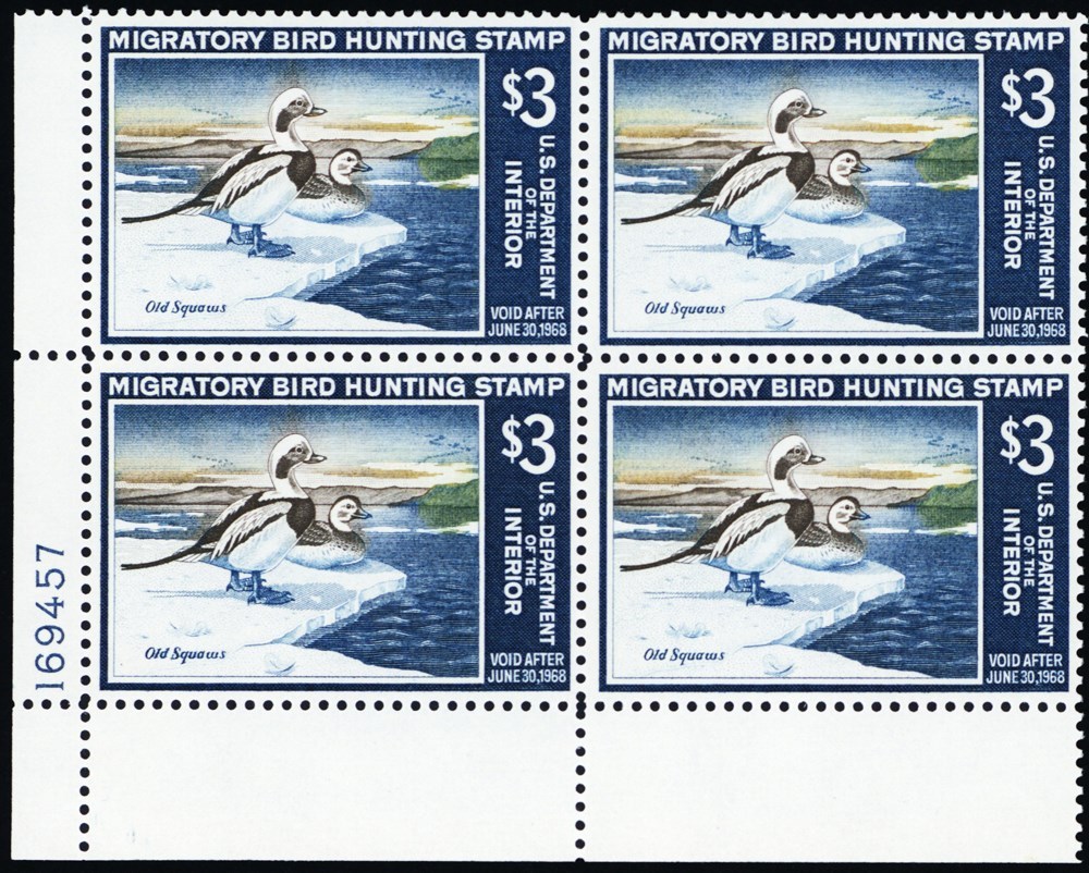 RW34, Mint XF NH Plate Block Old Squaws Federal Duck Stamp - Stuart Katz