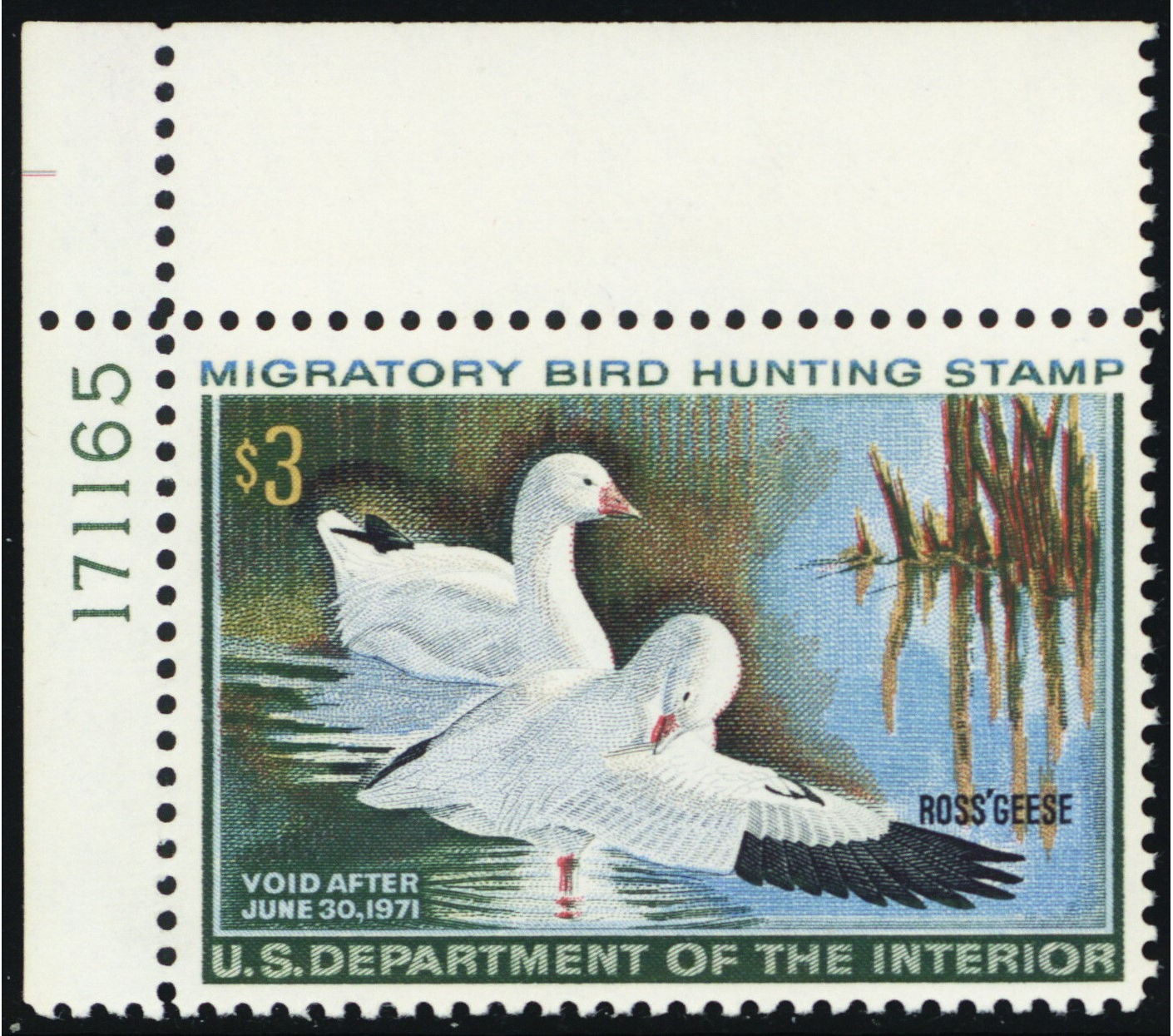RW37, Mint XF NH $3 Federal Duck Stamp With PL# - Stuart Katz