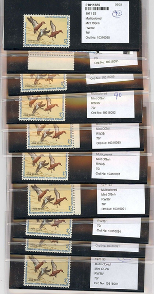 RW38, WHOLESALE LOT OF 10 - ALL XF OG NH PSE GRADED 90