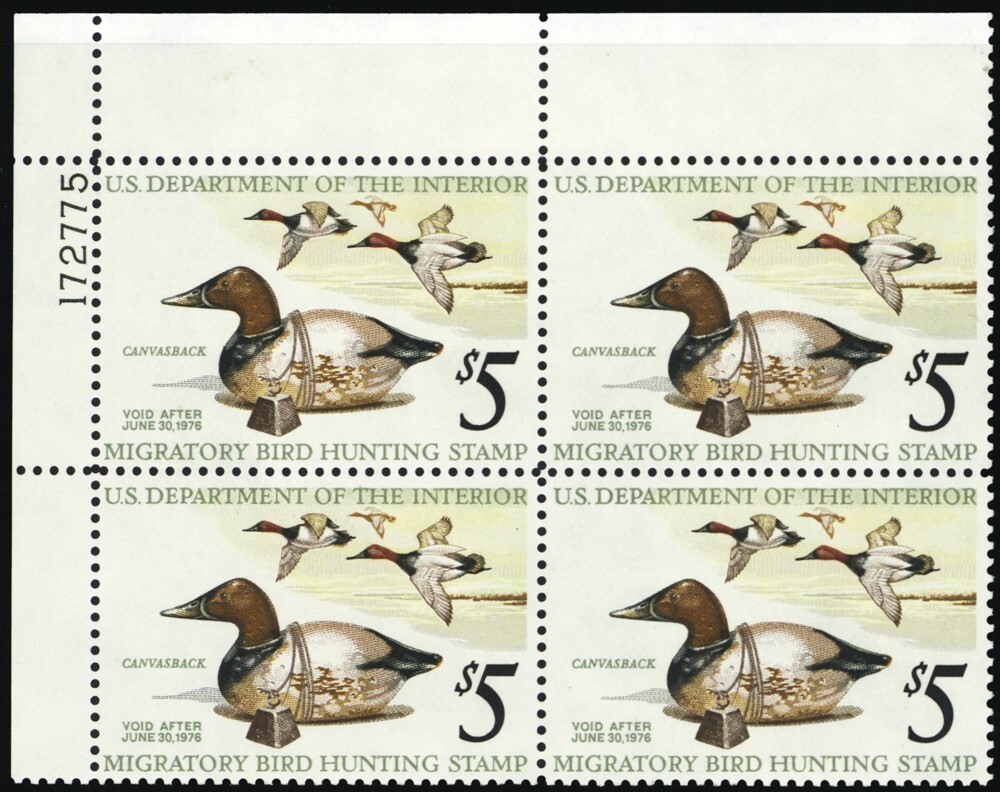 RW42, Mint NH XF $5 Federal Duck Stamp Plate Block SCV $65 - Stuart Katz