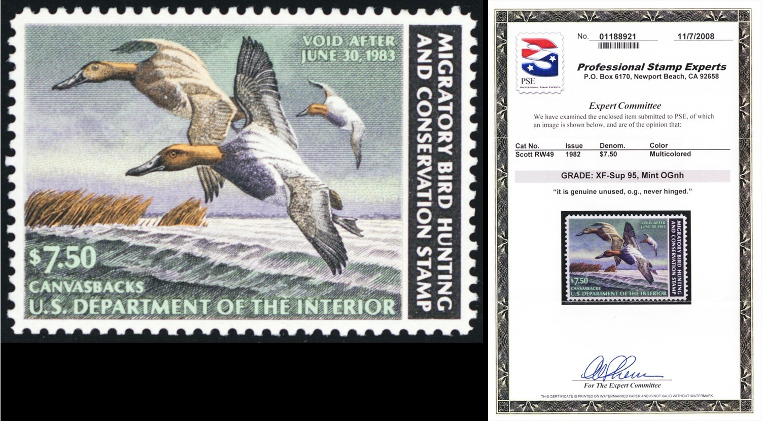 RW49, Mint XF/Superb NH $7.50 Duck Stamp - Graded 95 PSE Certificate Stuart Katz