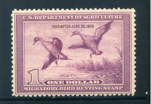 RW5, 1938 Duck Stamp, Mint disturbed o.g., tiny corner crease, Scott $200