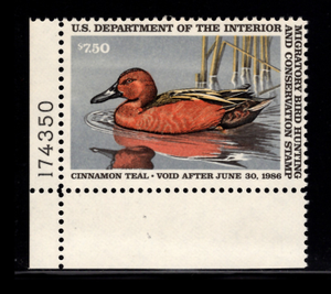RW52 with plate number, 1985 $7.50 Duck Stamp, Mint NH