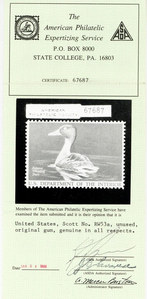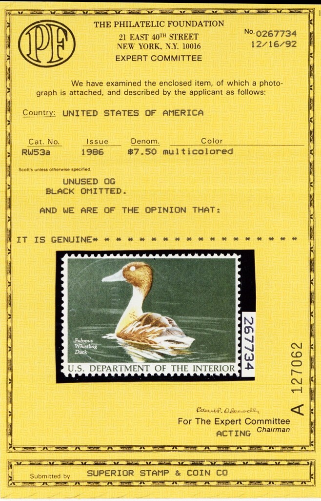RW53a, VF NH Black Color Omitted MAJOR ERROR With PF & APS Certs * Stuart Katz