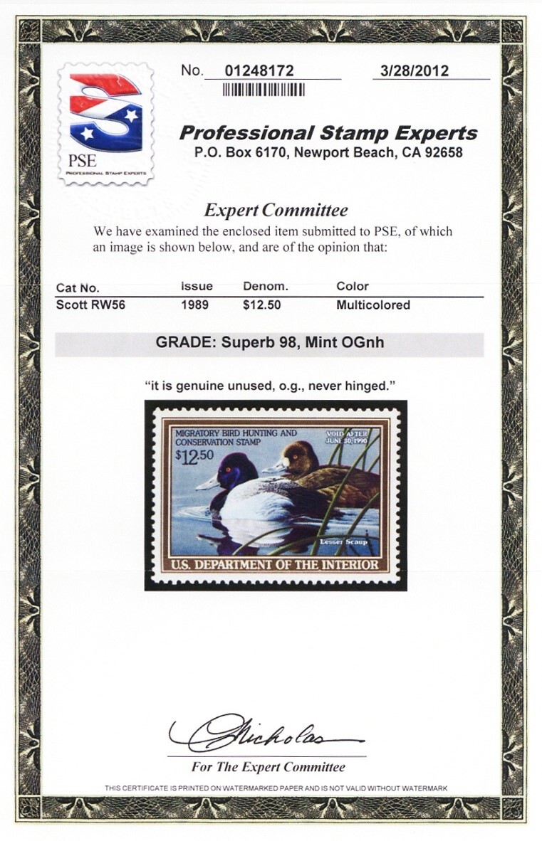 RW56, Mint Superb NH $12.50 Duck Stamp - PSE Graded 98 * Stuart Katz