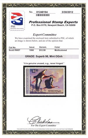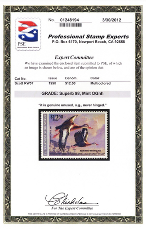 RW57, Mint Superb NH $15 Duck Stamp - PSE Graded 98 * Stuart Katz