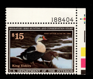 RW58 with plate number, 1991 $15 Duck Stamp, Mint NH