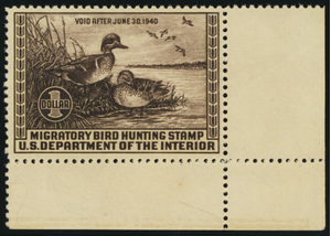 RW6, Mint VF NH $1 Duck Stamp Corner Margin Copy - Stuart Katz