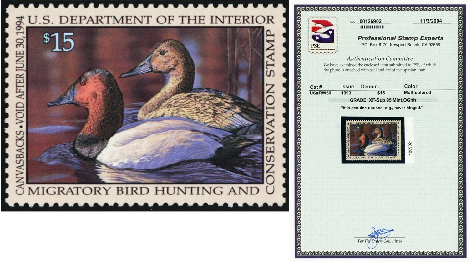 RW60, MNH XF/Superb $15 - With Graded 95 PSE Certificate - Stuart Katz
